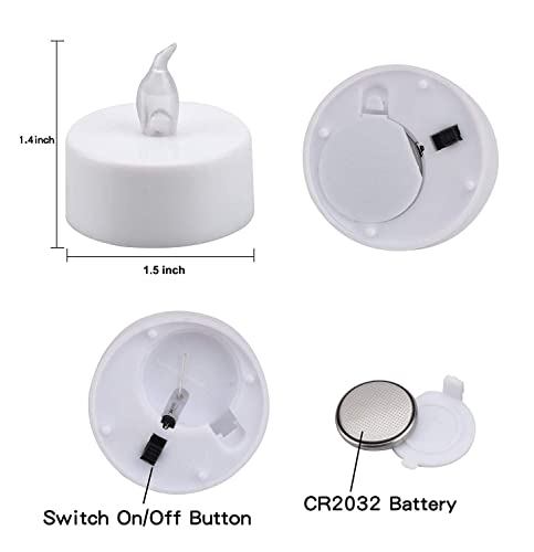 - LONG BATTERY LIFE: Each LED tea lights use a CR2032 button cell which is very efficient and easy to buy online or from local store. Last about 150-200 hours with a new battery. Batteries Included .