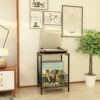 - 【Record Player Stand】2-Tier end table for additional storage meet all of your different needs.The top open smooth shelf gives sufficient storage place for storing and displaying. And the bottom wide U-shape iron wire basket for easy access and can storage records, snacks,cans or other stuff you want to put inside