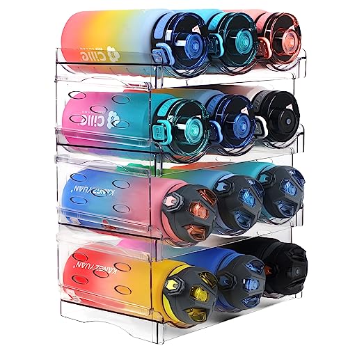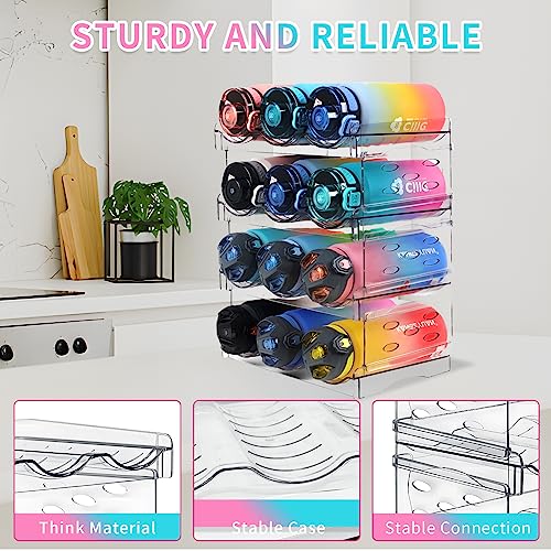 ALKNOT Water Bottle Organizer for Cabinet, 4 Pack Stackable Clear Plastic Water Bottle Holder,Wine Rack/Drink Bottle Storage Stand for Refrigerat