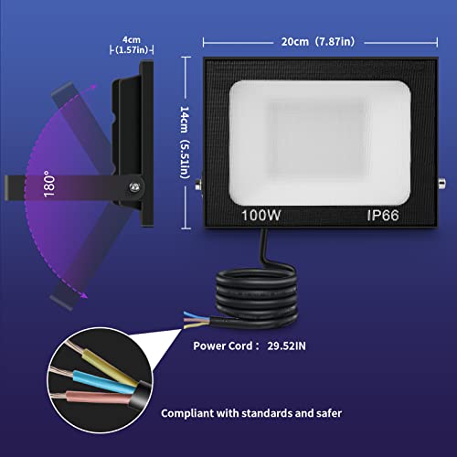 - ʚoɞ【Super Bright】: Outdoor security lighting 100W with 144LED / size : 20 x 14 x 4 cm / weight : 0,7 kg / IP66 Waterproof / Daylight White 6500K / 10000 lumens / 29.52ft Cable