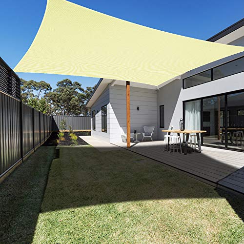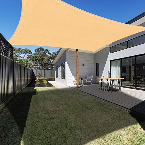 - Light but powerful fabric: double-edged sewing threads and stainless steel D-rings give stability and resistance to the garden sun shade, making both sides more robust. (NOTE: The shade sail is usually stitched together from two or three pieces of fabric, not single piece.)