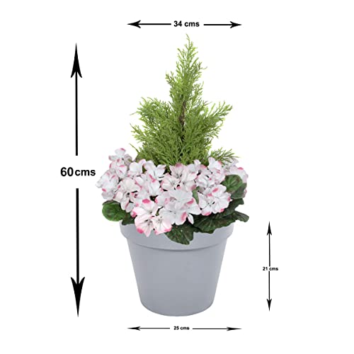 - Beautiful faux silk pansies with decorative conifer/cedar Topiary in the centre of the Planter