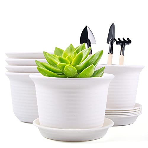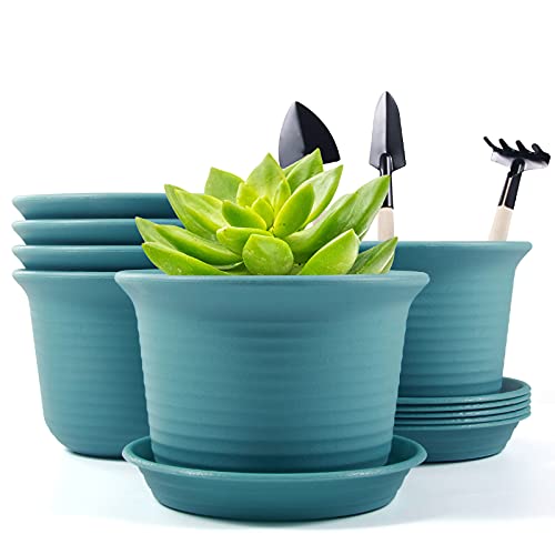 - ✿ 6 inch Pots for Planting: The size of each garden planters is 6×4.13×4.21 inch, Drainage Trays: 6×4.65×0.91 inch. (Opening Diameter × Bottom Diameter × Height); Suitable for planting aloe Vera plants, air plants, flowers, vegetables, etc.