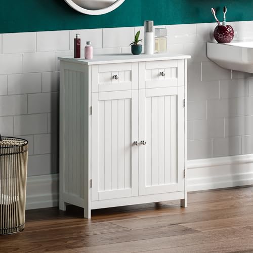 Home Bathroom Furniture Bath Vida Priano 2 Drawer 2 Door Bathroom Cabinet Storage Cupboard Floor Standing Unit, White