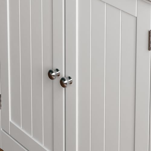• The cabinet features two panelled doors with metal knobs that open to reveal a spacious interior. The doors are easy to open and close, and the metal knobs add a touch of style to the cabinet.