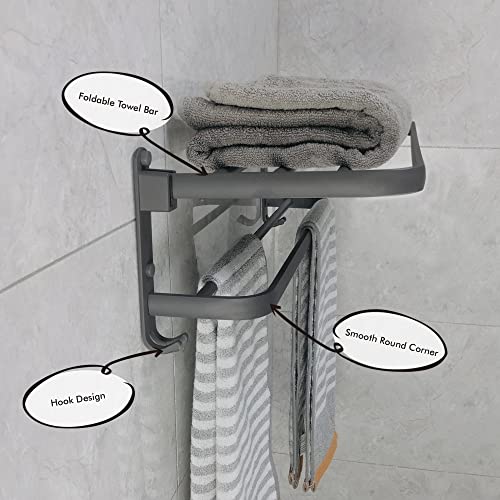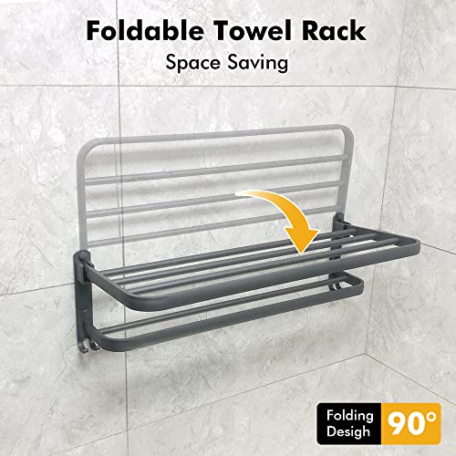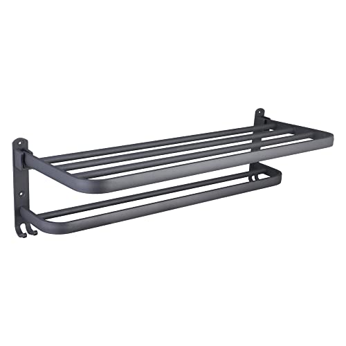- 【Space Saving】 : 57cm towel shelf can be 90 degrees folded , you can push it up when you are not using it, 2 rod towel bar can't fold and has enough space to accommodate more towels, double hooks on both side offer you for hanging bathroom accessories, making it ideal for home use.