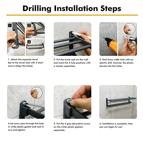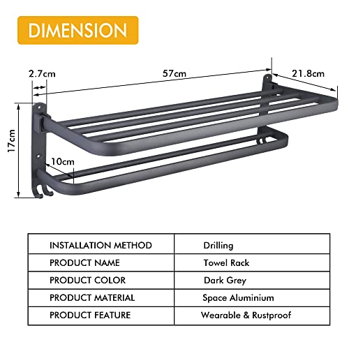 - 【Rustproof Material】: The towel holder is made of high-quality space aluminum, which has super anti-rust and anti-corrosion function, even better than stainless steel, it won’t rust even in a humid environment, surface treated by high-temperature matte dark grey spray technology.