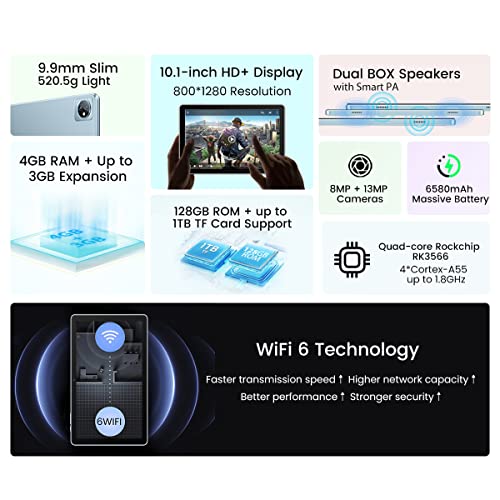 - ★【Quad-core Rockchip RK3566, 7GB RAM+128GB ROM, Power Unleashed, Efficiency Elevated】Get ready for blazing performance with Quad-core Rockchip RK3566 processor on Tab 8 WiFi! Experience lightning-fast speeds, smooth multitasking and seamless experience, allowing you to stay productive and entertained without any lag.(4*Cortex-A55 up to 1.8GHz)