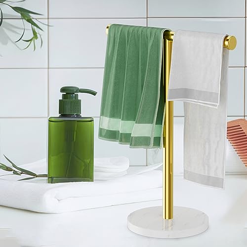 - ➤ [Marble Base & Non-Slip]: Bathroom towel rack with marble base, heavy base to strengthen the stability of the hand towel holder,solve the trouble of the holder stand shaking when pulling down the towel; designed with three soft rubber under the base, can be kept in the countertop does not slide; compared to the marble direct contact countertop, soft rubber can better protect the countertop