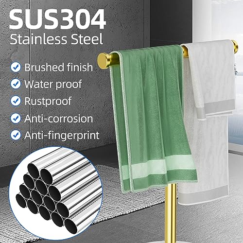 - ➤ [Unique T-shaped Design]: T shaped freestanding towel hanging rack can not only hold towels, but also jewelry, bracelets, hair ties and other fashion accessories, designed with rounded projections on both ends of the horizontal bar can ensure that small accessories hanging on will not easily slip off