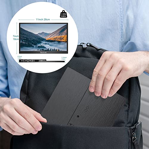- 11.6 inch Portable Monitor is made of sturdy aluminum CNC. Weight: 600g,16:9 screen ratio, a resolution of 1366 x 768 pixels,Support HDR,Eye Care Mode ,100%RGB Color Screen ,60 Hz refresh rate show the real image of the game / scene / work perfectly and quickly,