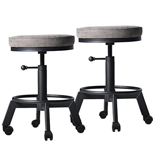 Home Home Bar Furniture BOKKOLIK Set of 2 Vintage Bar Stools on Wheels Industrial Rolling Bar Stool with Swivel PU Seat 17.5-23.4inch Height Adjustable Farmhouse Draftin