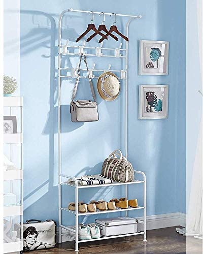 HomeHallway Furniture Coat Rack Shoe Bench with 8 removable Hooks, Metal Coat Hat Rack Free Standing Clothes Stand with 3-Tier Shoe Rack Bench, Hat Stand Hallway Organ