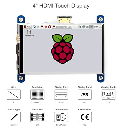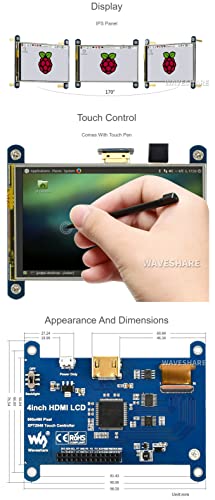 - Package contents: 4inch HDMI LCD x1; HDMI to micro HDMI connector x1; HDMI connector x1; Stylus x1; RPi screws pack (4pcs) x1