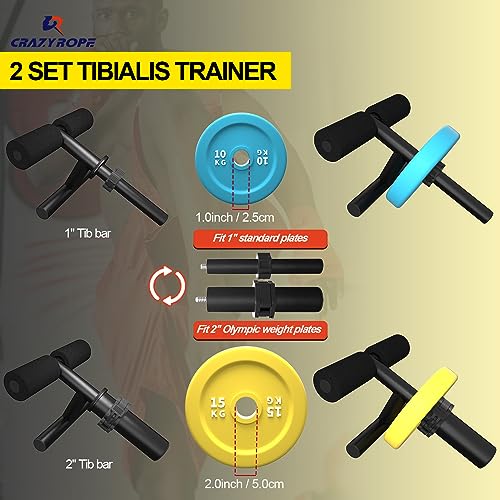 • ⏩️2 Set Tibialis Trainer➡1" and 2" tib bars are provided for you. CRAZYROPE tib bars exercise equipment not only fit 2" Olympic weight plates, but also fit 1" weight plates.