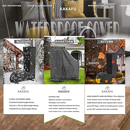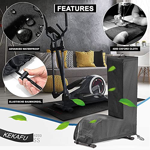 - HIGH-DENSITY 420D MATERIAL: This elliptical cross trainer cover is made of heavy-duty 420D Oxford fabric and coated with a waterproof PU layer, which is weatherproof, waterproof, UV-resistant and tear-resistant. No matter what the weather conditions, the KEKAFU eliptical machines fitness Cover protects your cross trainer better from sunlight, rain, snow, wind and dust.