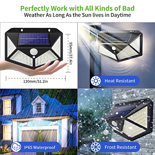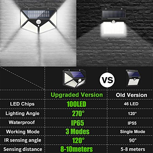 - 4 Packs Ultra-Bright Solar Motion Lights Outdoor – You will get 4 packs of outdoor wall lights that are equipped with 100 brighter LED beads in each pack, which have higher brightness and longer service life. These solar lights are equipped with 2000mAh batteries and only take 6-8 hours to be fully charged under direct sunlight. The lighting angle is up to 270°, which brings a wider and brighter lighting area and makes your way home safer and warmer.