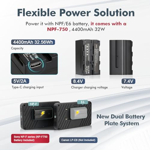 - 【Flexible power solution】It runs on a standard NP-F series battery and E6 battery(not included), also can via a DC 12V adapter (not included) for continuous power (***Please remove the battery after use in case the monitor will drain the battery out).