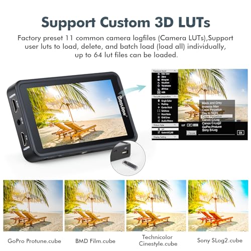 - 【Custom 3D LUT/ features】You can load the monitor with up to 28 groups LUT files for color calibration via the SD Input and the SD Card supplied (inbuilt Log files),and R5 packs lots of features such like Histogram,Vectorscope,Waveform,False color,Focus Peaking,Zoom etc.