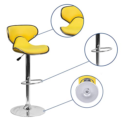 - This sharply designed yellow adjustable height bar stool may be the most comfortable, attractive piece you will ever buy with its ergonomically curved seat and back.