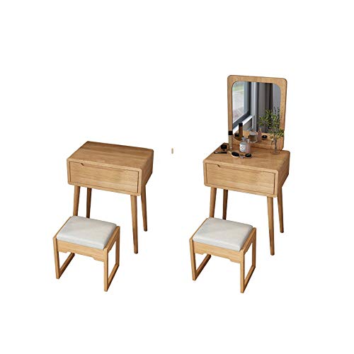 - Simple and elegant design, this vanity table and stool set can be a functional and sturdy piece of furniture to your bedroom, bathroom, closet or hallway. offer you a comfy place to do your makeup and hair.