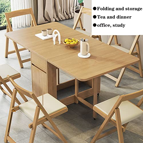 - 1. Real Wood Surface: Our folding dining table features a solid wood surface that is designed with a durable, waterproof, and scratch-resistant coating. The table legs and cabinet are made of sturdy rubberwood, ensuring long-lasting use. (Chairs not included).
