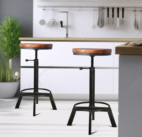 - 【Set of two Adjustable counter height barstools】With a smooth, 360-degree turning radius, adjustable height swivel and comfortable foot rest, each pub height bar stool is a comfortable companion to the kitchen island, kitchen counter or pub height dining room table