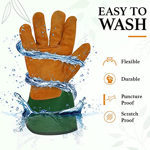 - WHY LEATHER? Our premium, stylish cowhide gardening gloves are rugged enough to be thorn proof for all types of gardening and weeding but soft enough to ensure comfort during those long summer's days outside. Leather also allows for breathability