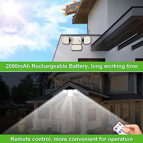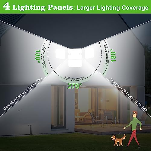 - 4 Heads Solar Motion Sensor Flood Lights: DSLebeen solar security lights outdoor are equipped with 2pcs smart sensors and 4 lighting heads, which provides larger detecting range and more wider lighting area. The motion sensor solar floodlight can be used conveniently in the porch, yard, garden, pathway, front door, garage...
