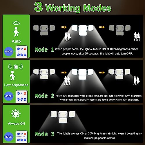 - 3 Lighting Modes & Remote Control: The solar wall lights outdoor motion sensor provides 3 lighting modes, you can easily choose the lighting modes by remote control, good choice for using the solar flood lights outside the garden, pathway, porch, patio, front door or garage, and it also can use in staircase or storeroom indoor home.