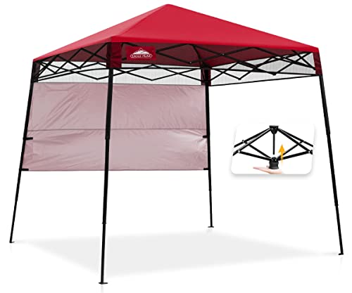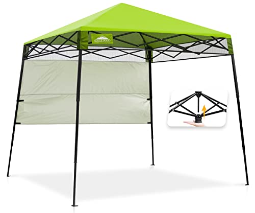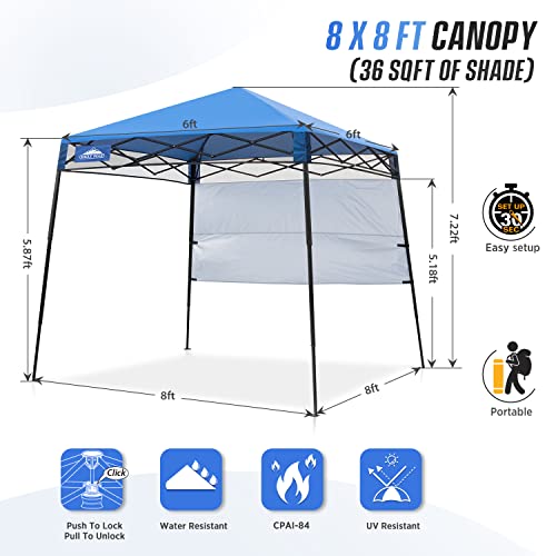 - SUPERIOR QUALITY: Rest assured that this canopy is stable and sturdy in the wind with its high-quality steel top, slant-leg frame. The canopy measures 8 x 8 ft footprint and 6 x 6 ft at top, provides 36 sq ft of shade coverage for 3-5 people, perfect for family gathering or friends reunion. Enjoy your time with the 190T Oxford fabric canopy top which features UPF 50+ sun protection.