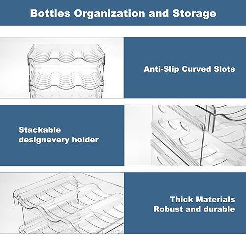 Eapura Plastic Water Bottle Organizer,4 Pack Stackable Storage Bottle Holder Rack for Cabinet,Fridge,Wine Holder&Water can Storage.Kitchen Organi