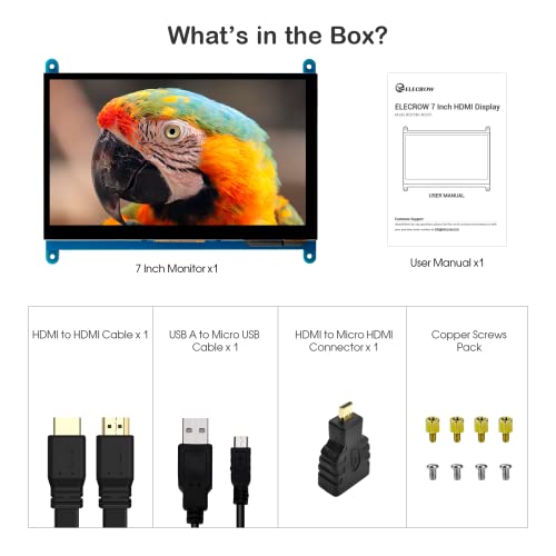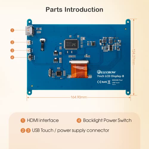 Home Computers & Accessories ELECROW Raspberry Pi Screen 7 Inch Touchscreen Monitor LCD Screen 800×480 Resolution Compatible with Raspberry Pi 4 3 2 Banana Pi BB Black Jetson