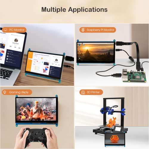 • Touchscreen --- The USB capacitive touch control is comptible with Windows and raspberry pi system, free-driver, just connect the 7” screen by the USB port of the computer/ Raspberry Pi.