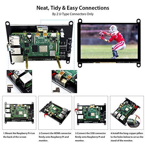 - 1.【Say Goodbye to Messy Desk with is Touch Screen Monitor】No cable is needed for installation of this small monitor. Install the Pi on the back of the touch screen only with connectors.