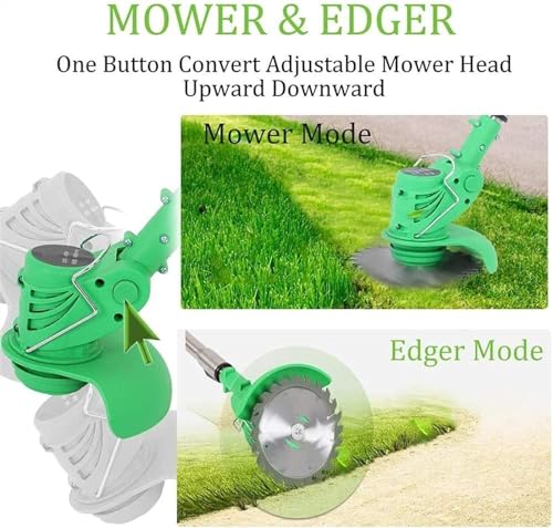 • Mower & Edger 2-in 1:This multi-functional lawn mower with one button easily converts from a precision Grass mowing to edging. So you can trim and edge on sloped terrain, and get to tough-to-reach places. Great for trimming your lawn and don't damage plants and landscape features
