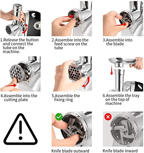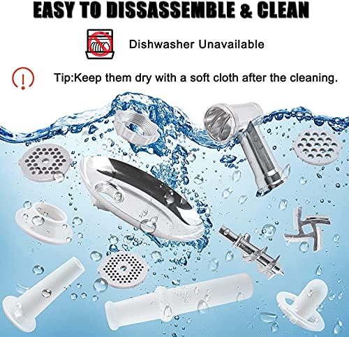 • ✔️【Easy to Operate】 : Removable square aluminum meat tray holds a generous amount of meat to simplify processing, Full set of accessories mincer disks x 3, sausage maker, kibbe maker attachments is included to meet your needs.