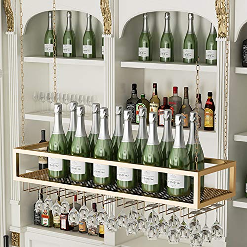 EMISOO Wine Rack Wall Mounted - Metal Bar Hanging Wine Cabinet, Ceiling Wine Racks, Home Cabinet Organizers, Height Adjustable (Black,Gold)