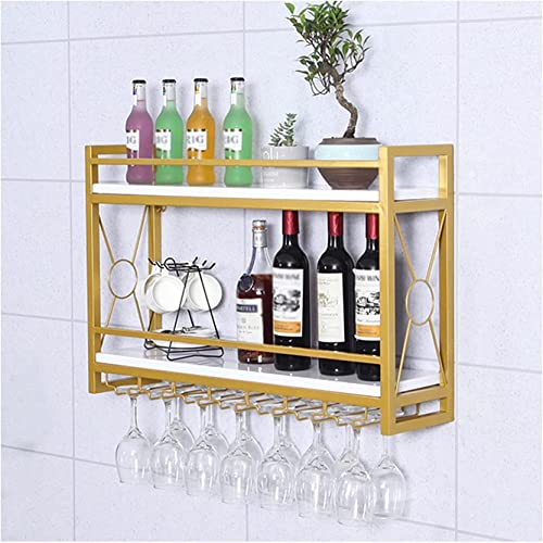 Home Home Bar Furniture EMISOO Wine Rack Wall Mounted, Wine Bottle Stemware Glass Rack Wall Mounted, Metal Hanging Wine Holder, Home Decor Wall Shelf, Black/White/Gold