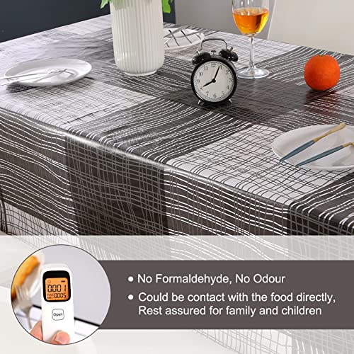- MATERIALS: Vinyl. Eco-friendly Materials. This Tablecloth is suitable for kitchen room, dining room, and family room. This white gray black striped vinyl table cloth gives you superior strength and durability and also provides the convenience of being stain & waterproof that your dining events require.