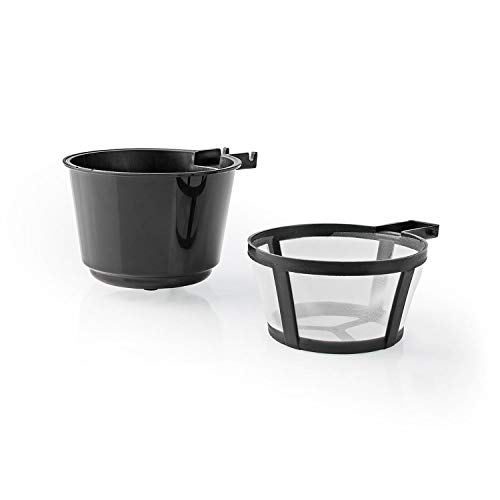 - [REUSABLE FILTER] - This coffee maker comes with a reusable filter, with no paper filters required. Its sleek stainless steel/high gloss black finish fits every interior.