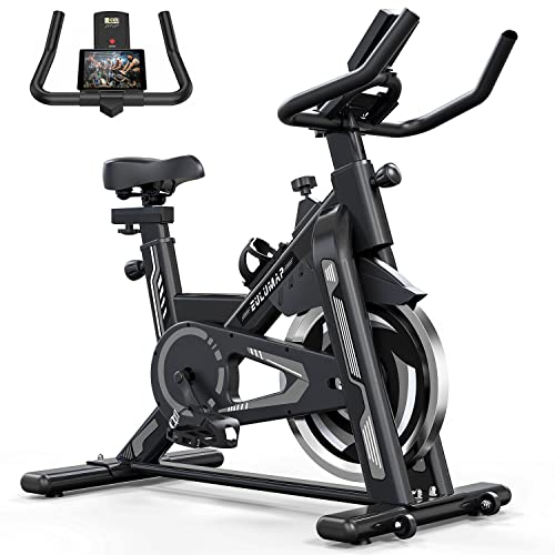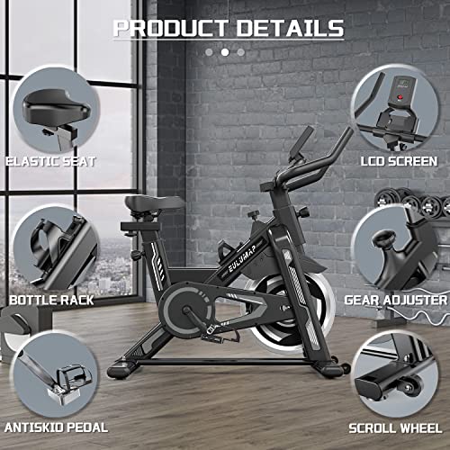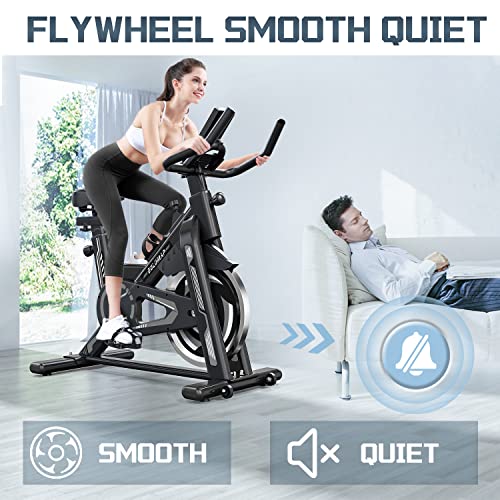 - 1.Smooth indoor stationary bike: Flywheel and heavy duty steel frame ensure stability when riding. The drive system provides a smoother and quieter riding experience and it won't disturb your neighbors or sleeping family members.
