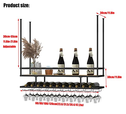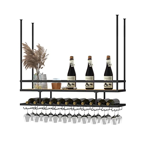 - Material: Height Adjustable Hanging Ceiling Wine Rack Made of Metal and Solid wood. No Need to Worry About Falling, Carrying capacity, Long service life. It is an essential decoration for any room.