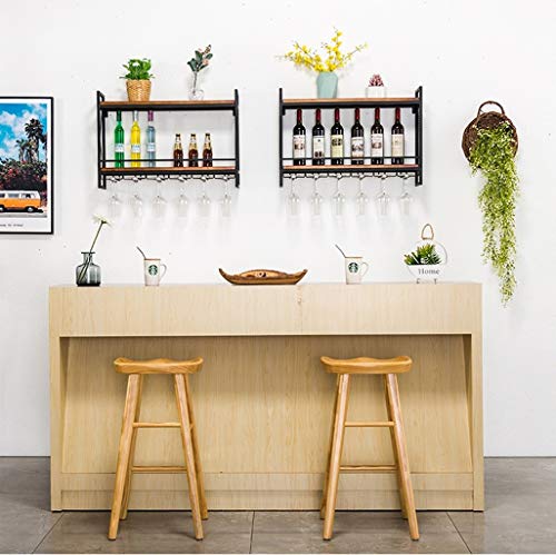 Home Home Bar Furniture EYLINK Vintage Rustic Floating Shelves Wine Rack, Bar Kitchen Metal and Wood Wine Bottle Rack Wine Stemware Rack Goblet Holder 2 Tiers Wall Shelf