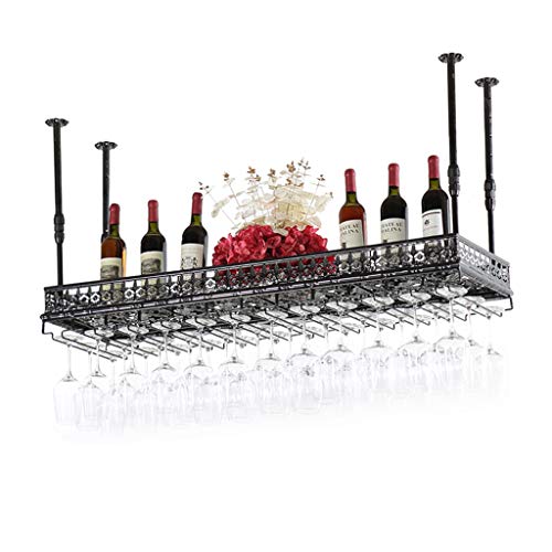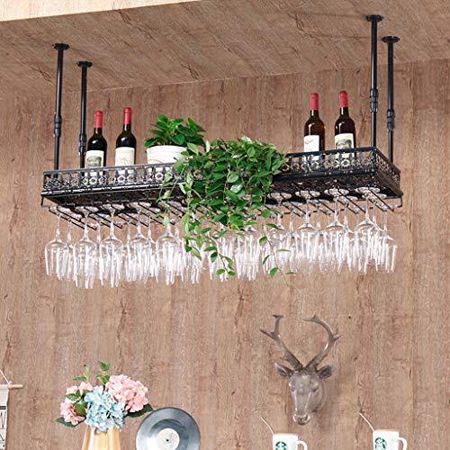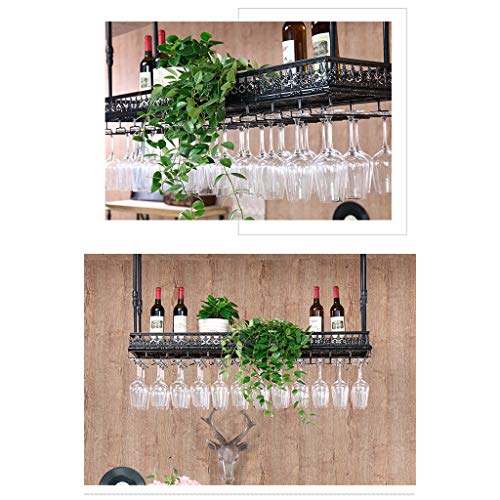 EYLINK Wine racks Home/Bar Retro Hanging Metal Wine Shelf with Stemware Holder, Wine Glass & Bottle Organizers, Vintage Wall Mounted Adjustable,