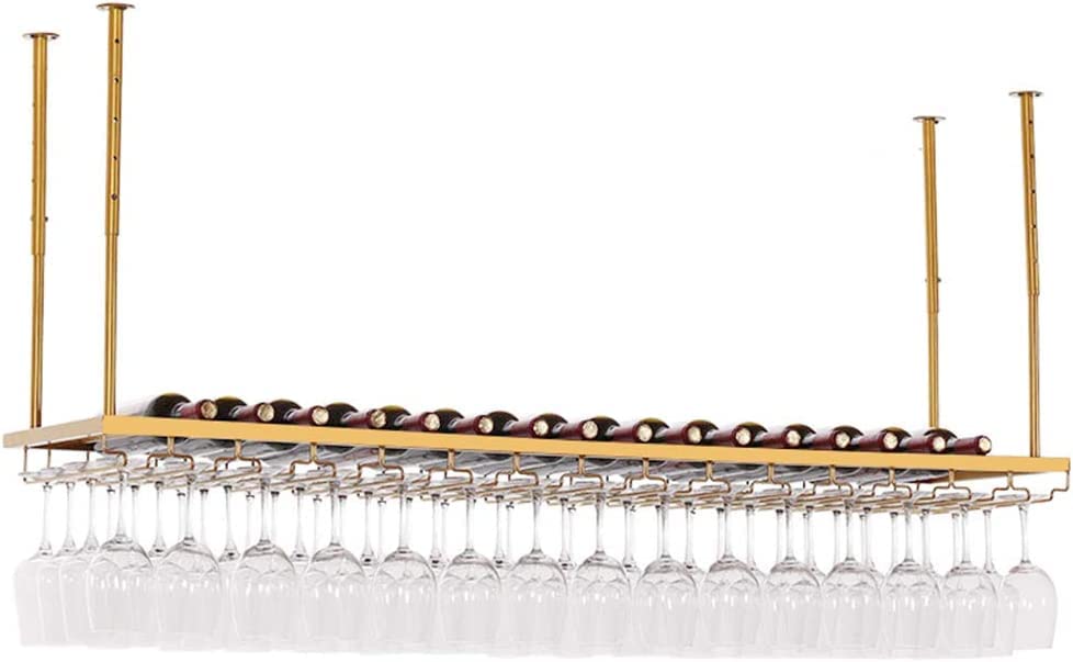 EYLINK Wine racks Home/Bar Retro Hanging with Glass Holder, Adjustable Metal Ceiling Bar Wine Glass Rack, Industrial Wall Mounted Wine and Glass