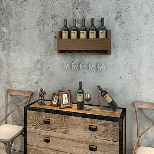 - Multi-Functional Wine Racks: this all-in-one wall mounted wine rack keeps your favorite wine on display and stemware within reach. This wood wine rack 60CM can hold 5 bottles and 5 Glasses.