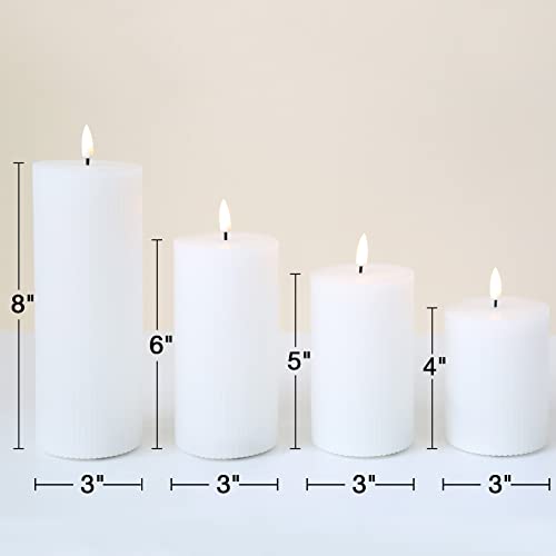 - What’s Box – this white led pillar candles set includes one 3 x 4 inch, one 3 x 5 inch, one 3 x 6 inch, one 3 x 8 inch pillars, 1 remote control and one user manual, well box packaged.