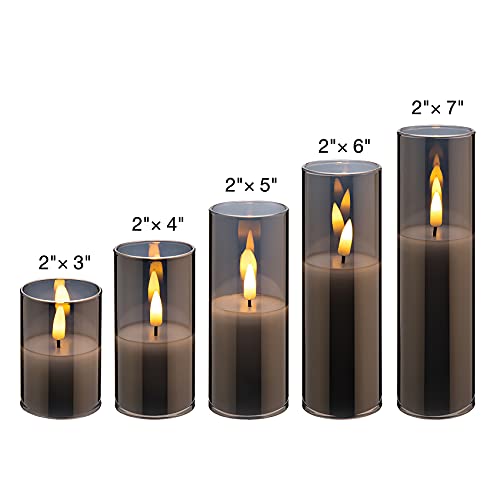 - ✔ PACKAGE LIST – 5 pcs slim led candles in glass holders(size: Φ 2″ x H 3″/4″/5″/6″/7″), 1 10-key remote control,1 user manual. 5 x CR2450 coin cell INCLUDED.