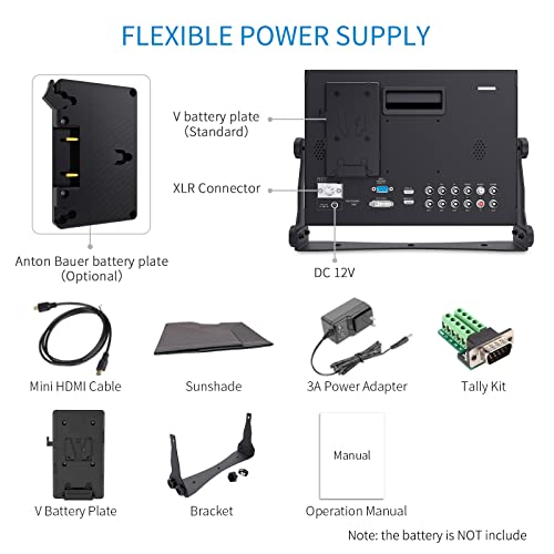 - Standard Accessories: 1.5A DC Power Adapter, V Battery Plate, Mini HDMI Cable, Tally Kit, Sunshade, U bracket, Operation Manual